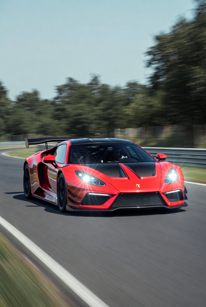 Red Supercar Racing on Track