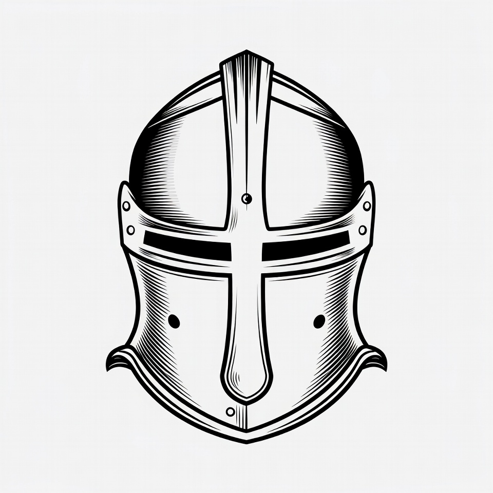 armor, black and white, clipart, crusader, engraving style, fantasy armor, great helm, helmet, illustration, isolated background, knight, line art, medieval helmet, steel helmet, vector art, warrior, knight helmet