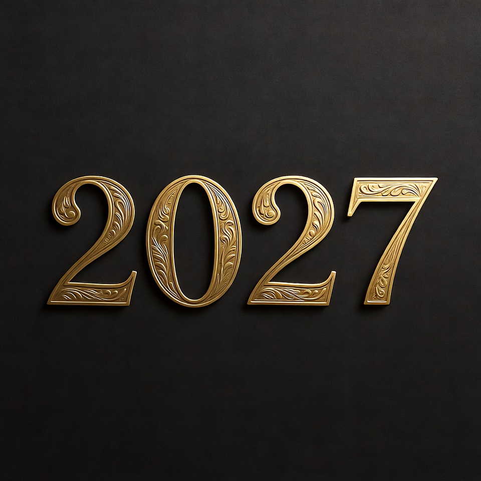 3D numbers, black background, dark backdrop, decorative font, elegant numerals, festive numbers, filigree design, gold lettering, gold numbers, golden text, golden year, isolated background, luxury design, metallic gold, new year, numeral art, numeric art, ornate numbers, premium design, shiny gold, typography, vector style, year 2027, year digits, 2027