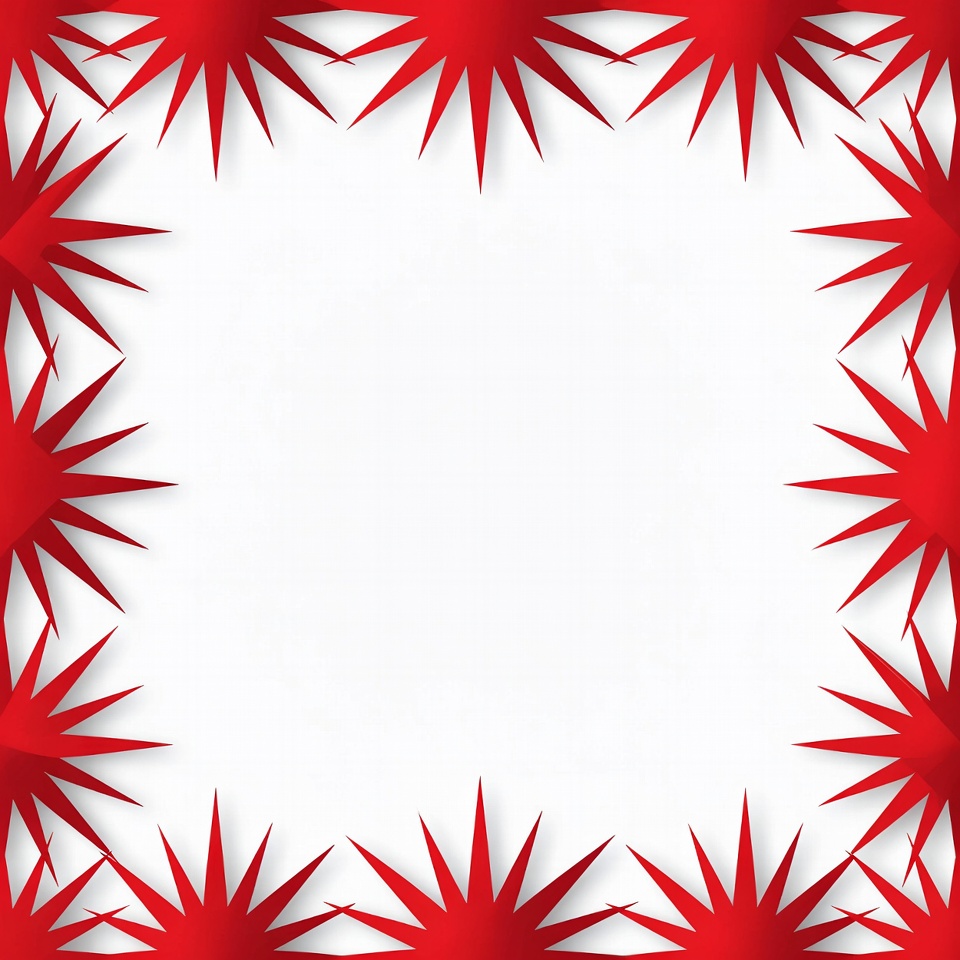 A vibrant red starburst border frames a large white empty space. The pointed star shapes are arranged symmetrically around all four edges. The design features a clean, isolated white background.