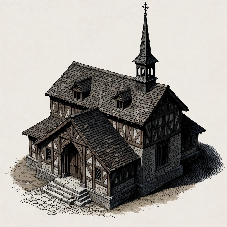 Medieval Timber Church Illustration