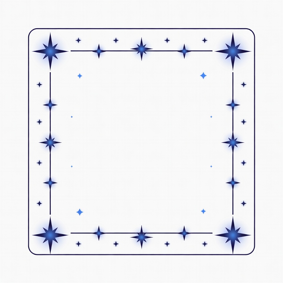 blue border, border, clipart, decorative frame, frame, glowing stars, graphic design, illustration, isolated background, sparkles, square frame, star frame, star pattern, stars border, blue stars