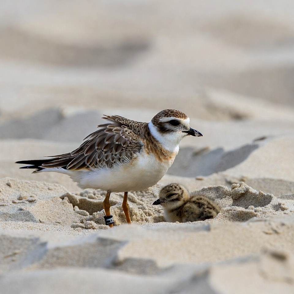 Piping Plover with Chicks on Beach