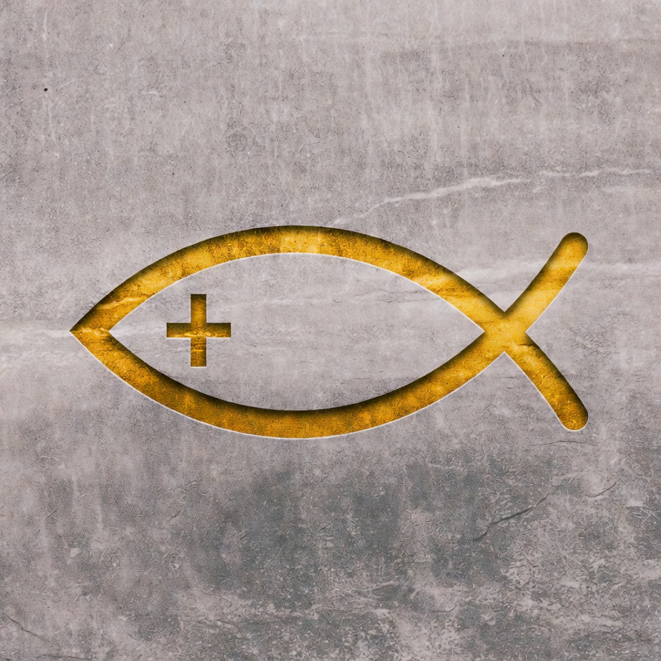 Gold Ichthys with Cross on Gray