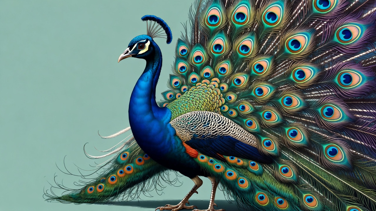 Peacock displaying vibrant tail feathers