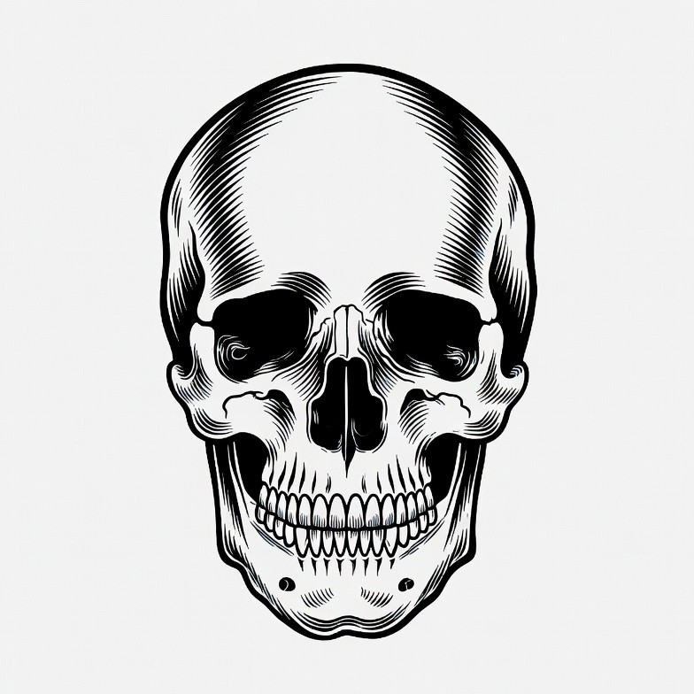 Black Ink Human Skull Illustration