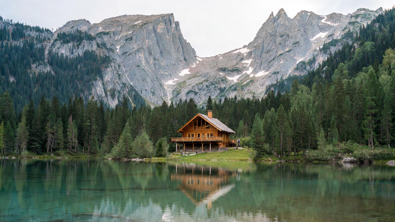 Wooden Cabin by Mountain Lake