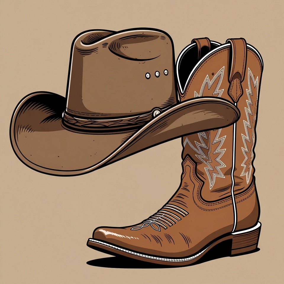 Cowboy Hat and Boots Illustration