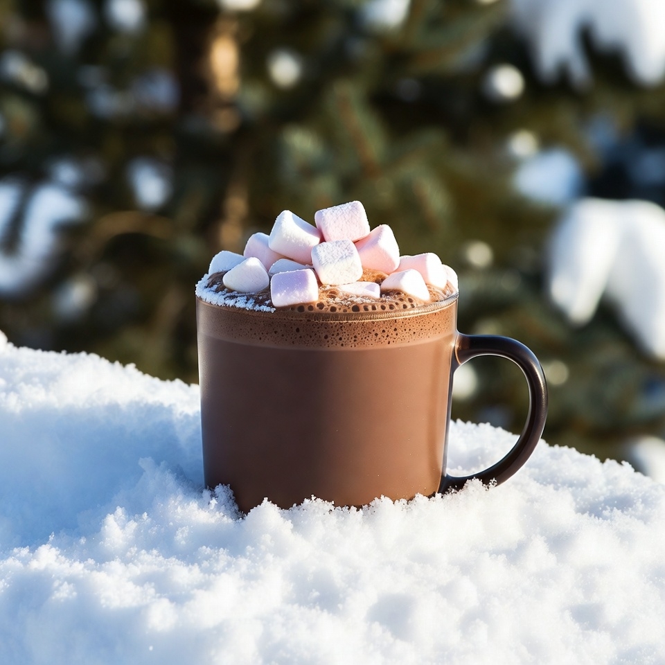 Hot Chocolate with Marshmallows in Snow