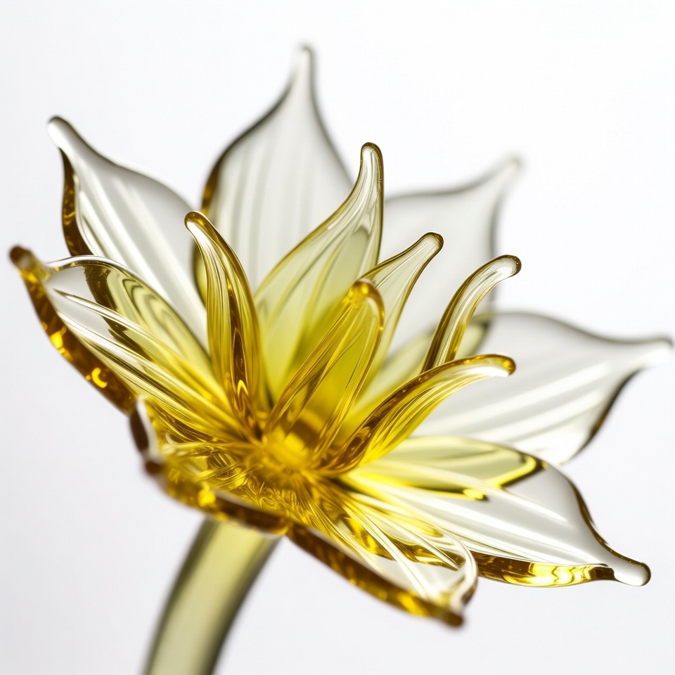 amber lotus, crystal lotus, decorative flower, floral sculpture, flower closeup, glass art, glass flower, glass sculpture, isolated flower, shiny petals, translucent petals, white background, yellow flower, yellow lotus, lotus flower