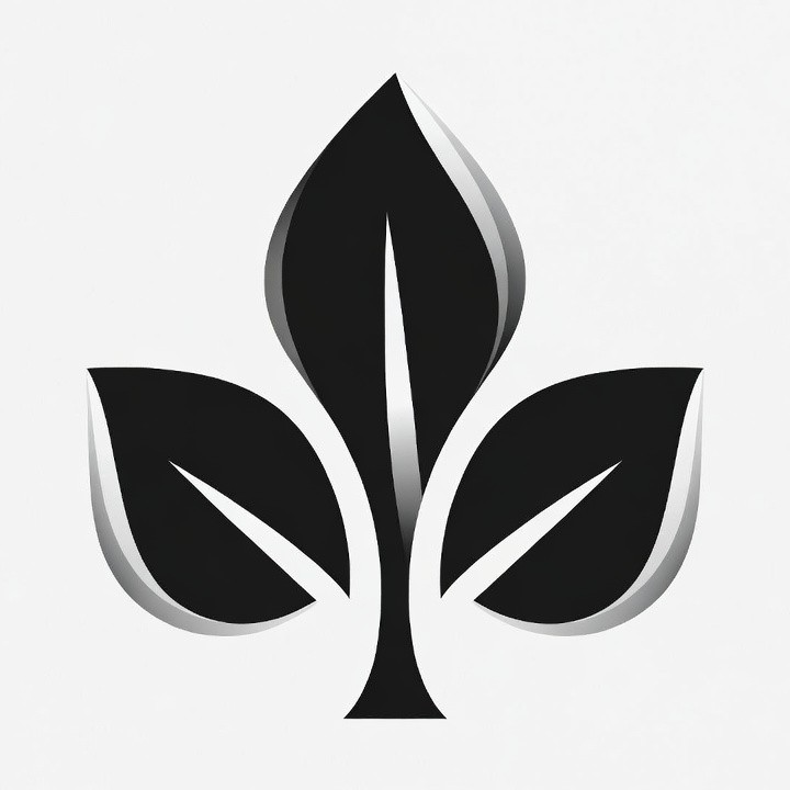 abstract plant, black white, clipart, foliage design, green leaf style, isolated background, leaf illustration, leaf logo, metallic leaves, nature symbol, plant icon, shiny leaves, simple plant, vector graphic, three leaves