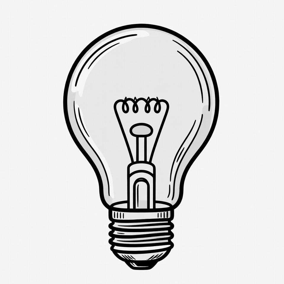 bright light, bulb, cartoon bulb, clipart, doodle, electric light, energy, filament, glass bulb, glowing, hand drawn, idea symbol, illustration, incandescent, invention, metal base, outline, sketch, vector art, white background, light bulb
