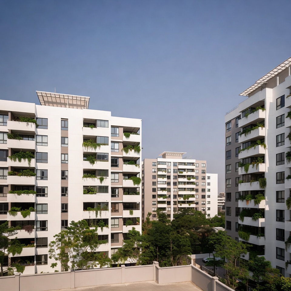 Modern White Apartment Buildings with Greenery