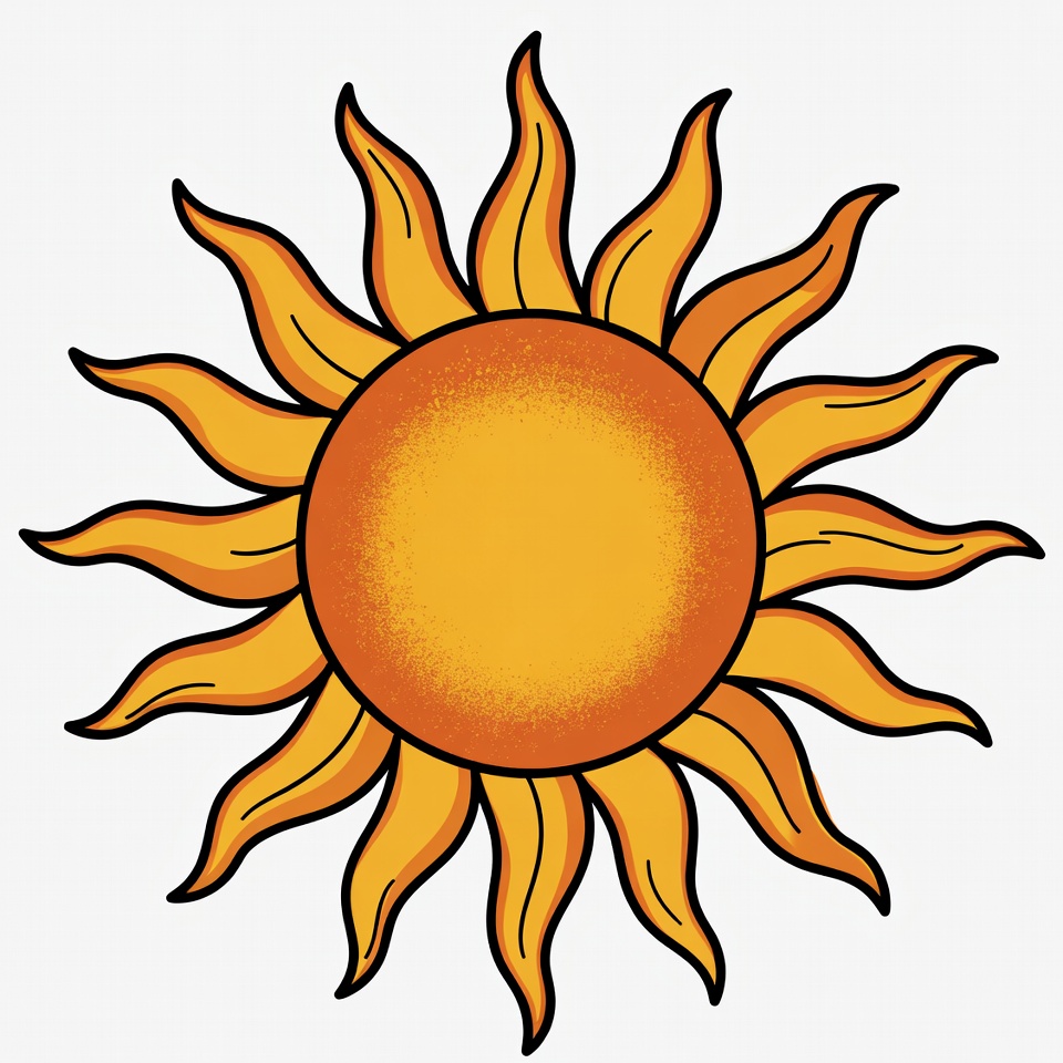bright sun, cartoon sun, clipart, drawing, fiery rays, graphic, happy sun, isolated background, orange sun, summer sun, sun illustration, sun rays, sunshine, vector sun, sun