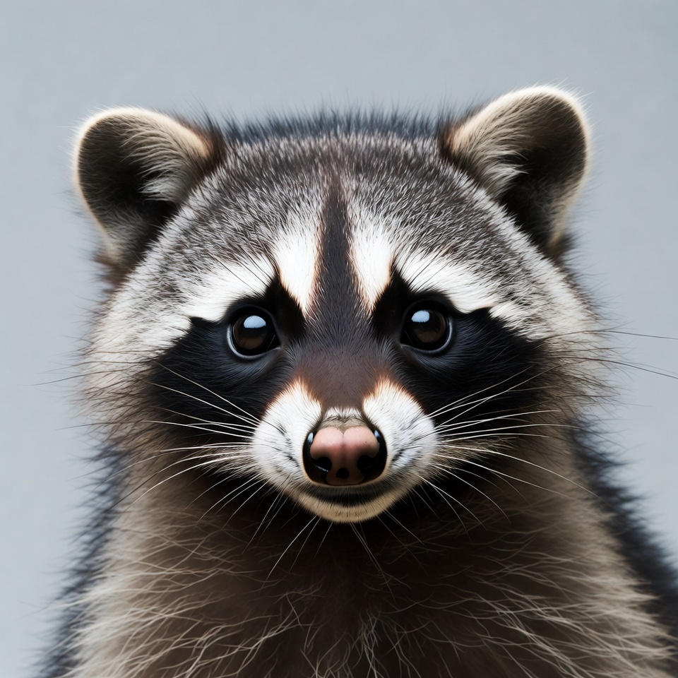 adorable, animal, big eyes, close-up, cute raccoon, fluffy fur, furry, gray fur, isolated background, mammal, masked face, nature, pink nose, portrait, raccoon face, raccoon portrait, whiskers, wild animal, wildlife, raccoon