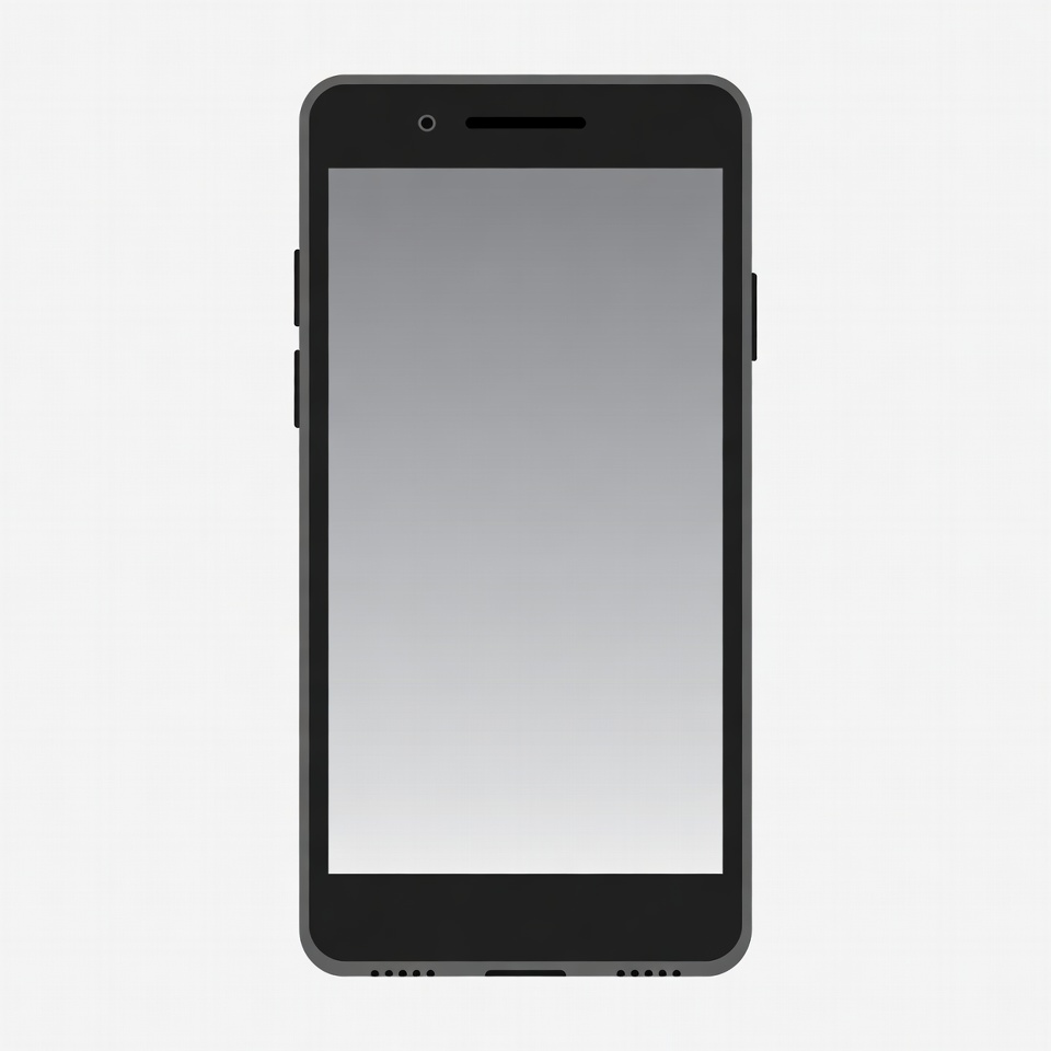 A simple vector illustration of a black rectangular smartphone on a white background. The screen is depicted as a large gray rectangle. The device features rounded corners, side buttons, and a top speaker.