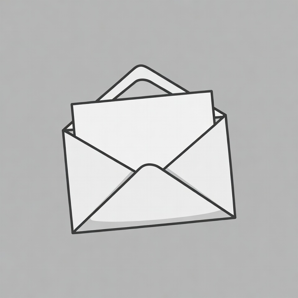 A simple line drawing of a white open envelope on a gray background. A sheet of paper protrudes from the top of the envelope. The illustration features clean black outlines.