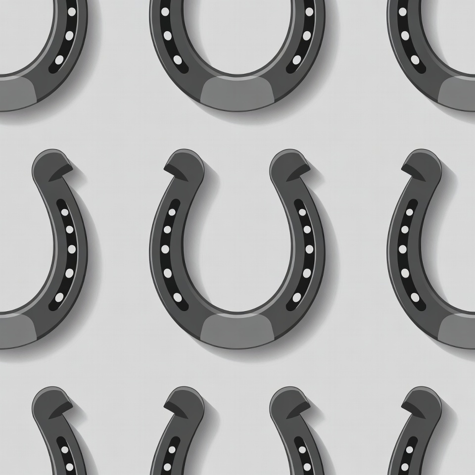 3D effect, black horseshoe, clipart, equestrian, good luck, gray background, horseshoes, illustration, isolated background, luck symbol, nail holes, pattern, repeating, seamless, vector art, horseshoe