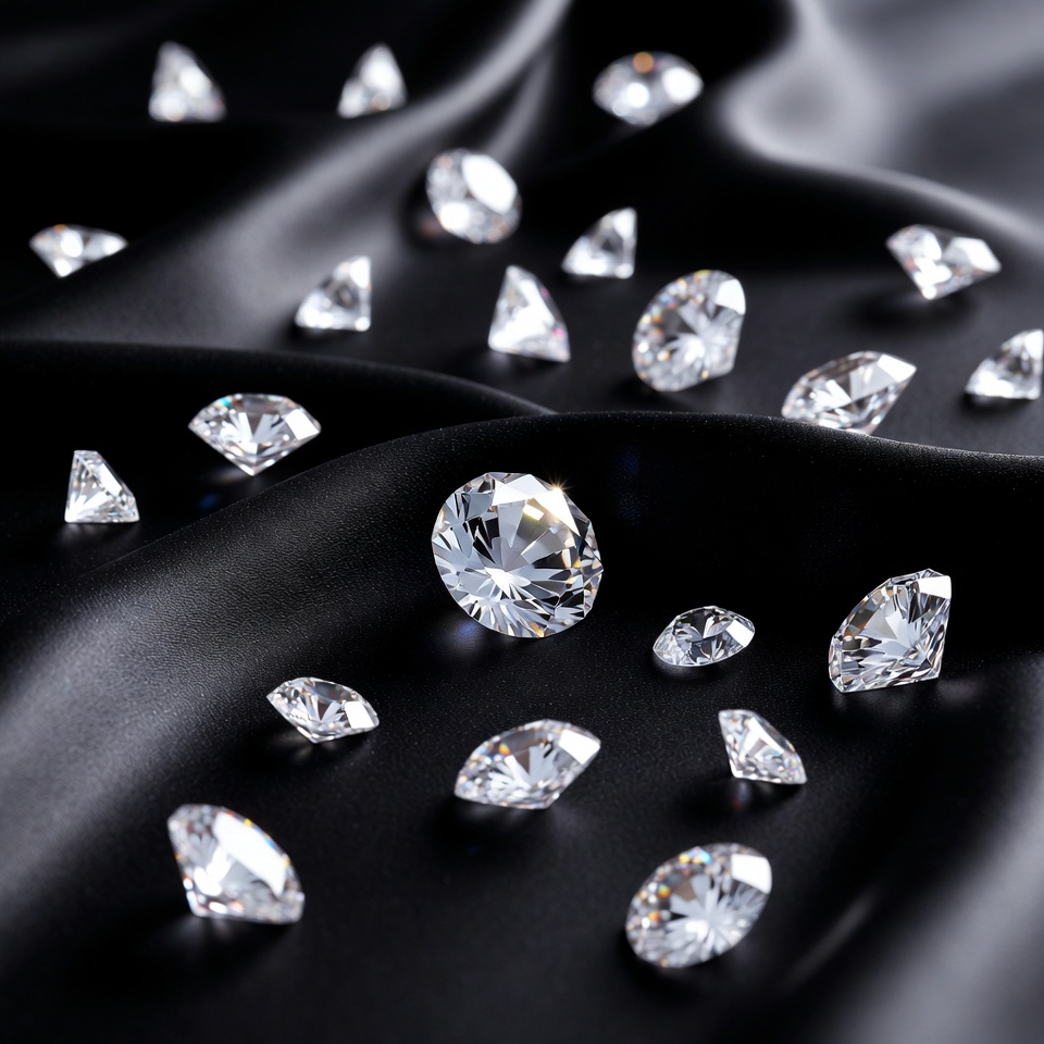 black satin, black silk, diamond crystals, diamond jewels, elegant background, facets, isolated background, jewelry, luxury fabric, precious gems, reflections, scattered diamonds, shiny stones, sparkling gems, diamonds