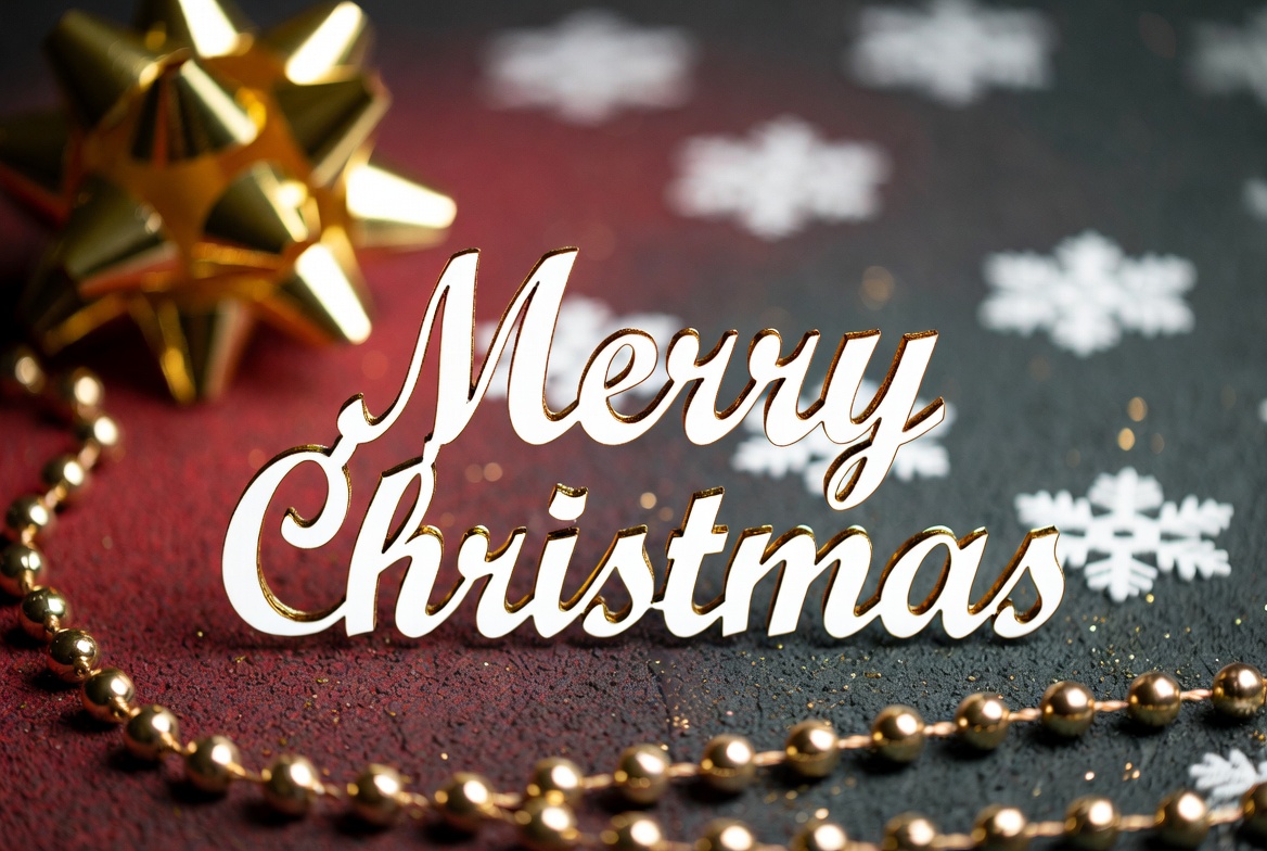 Merry Christmas Text with Gold Bow