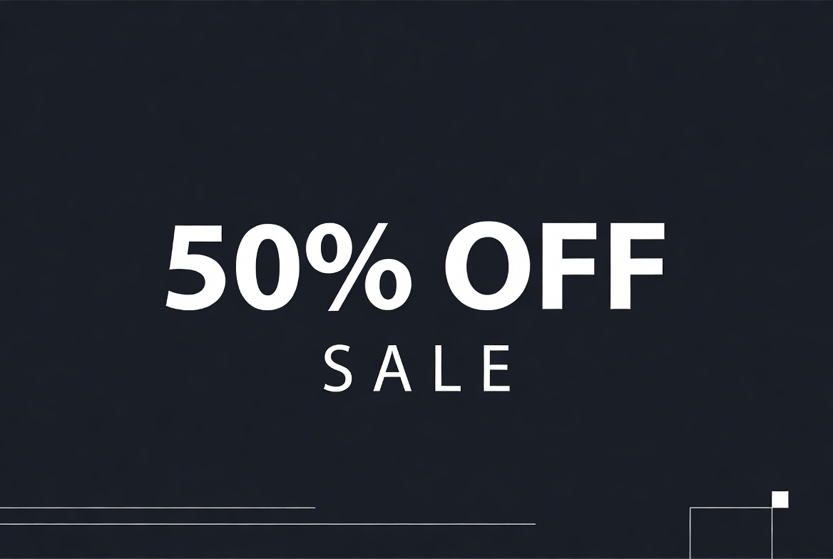 banner, black background, bold font, deal, discount, graphic, isolated background, offer, promotion, sale, shopping, white text, 50% off