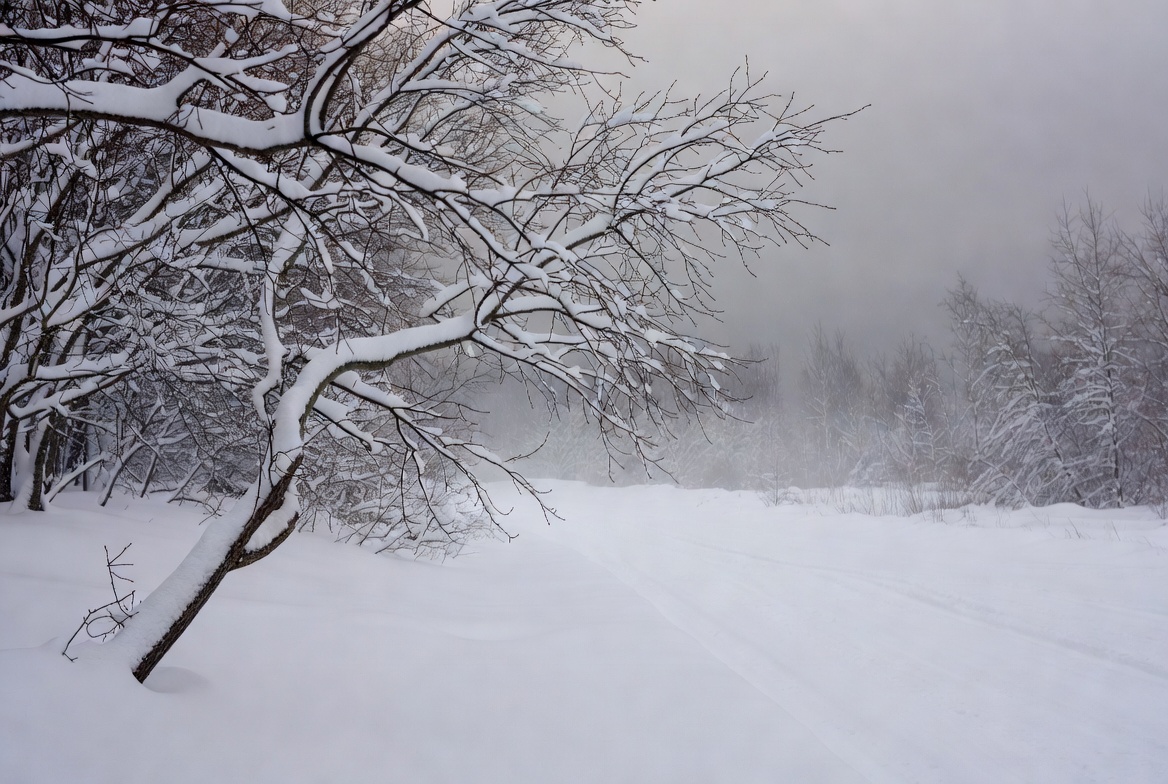 bare trees, foggy forest, frozen forest, gray sky, heavy snow, snow covered branches, snow path, snowscape, snowy woods, trees in snow, winter forest, winter landscape, winter nature, winter scene, snowy trees
