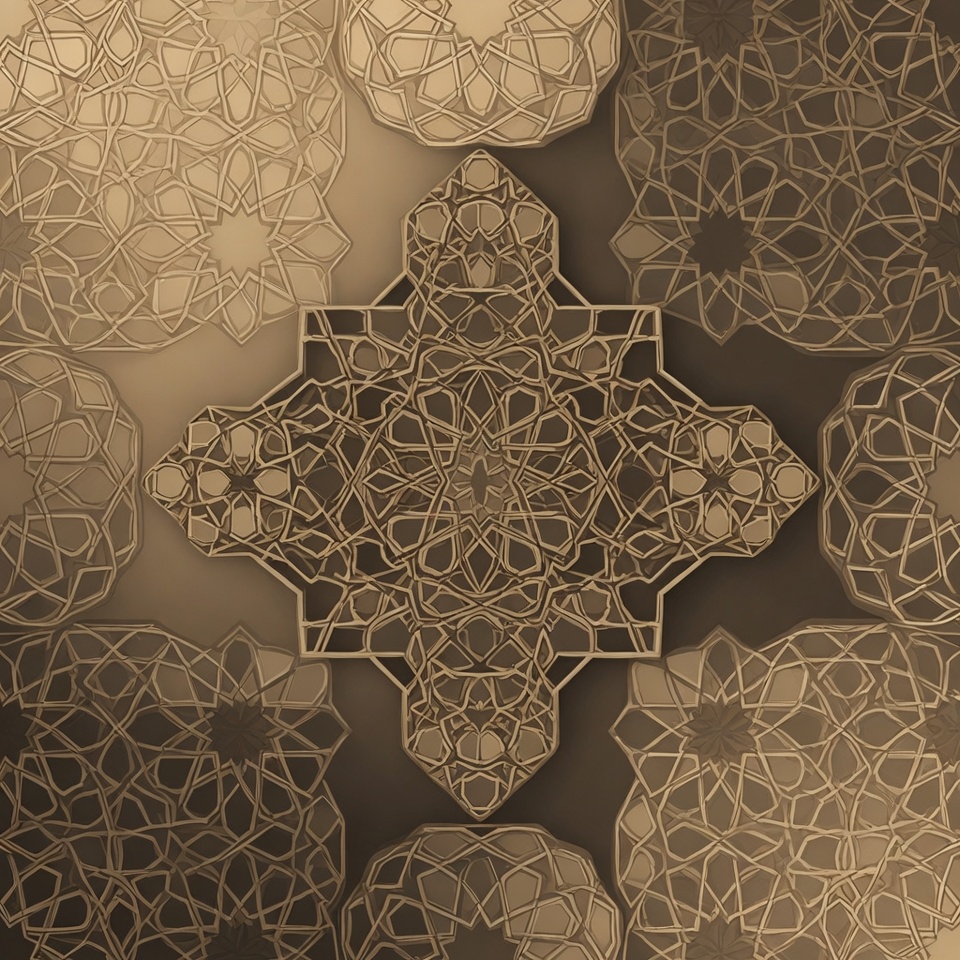 3D effect, Arabesque, Middle Eastern design, Moroccan tile, Turkish pattern, abstract art, background texture, beige pattern, brown geometric, cross layout, decorative pattern, floral motifs, geometric design, gold tones, intricate design, isolated background, layered design, mandala, ornament, star motifs, symmetrical pattern, tan shades, tilework, vector art, wallpaper design, Islamic pattern