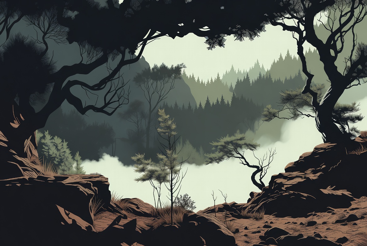 Misty Pine Forest Illustration
