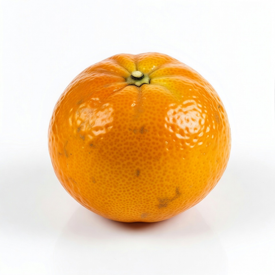 citrus fruit, closeup fruit, fresh fruit, fruit isolated, glossy fruit, green stem, healthy food, orange fruit, ripe orange, single fruit, tangerine, textured peel, vitamin C, white background, mandarin orange