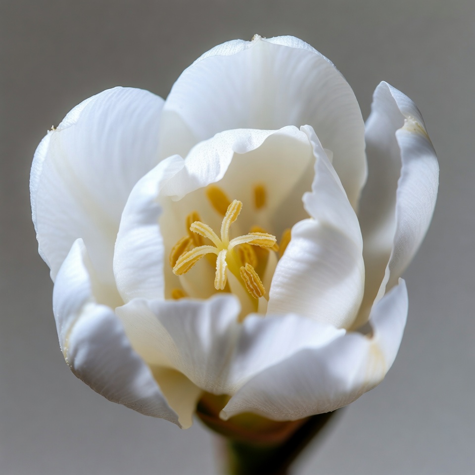 bloom, floral, flower closeup, garden flower, isolated background, macro photography, nature, petals, plant stem, spring flower, tulip flower, white flower, yellow stamens, white tulip