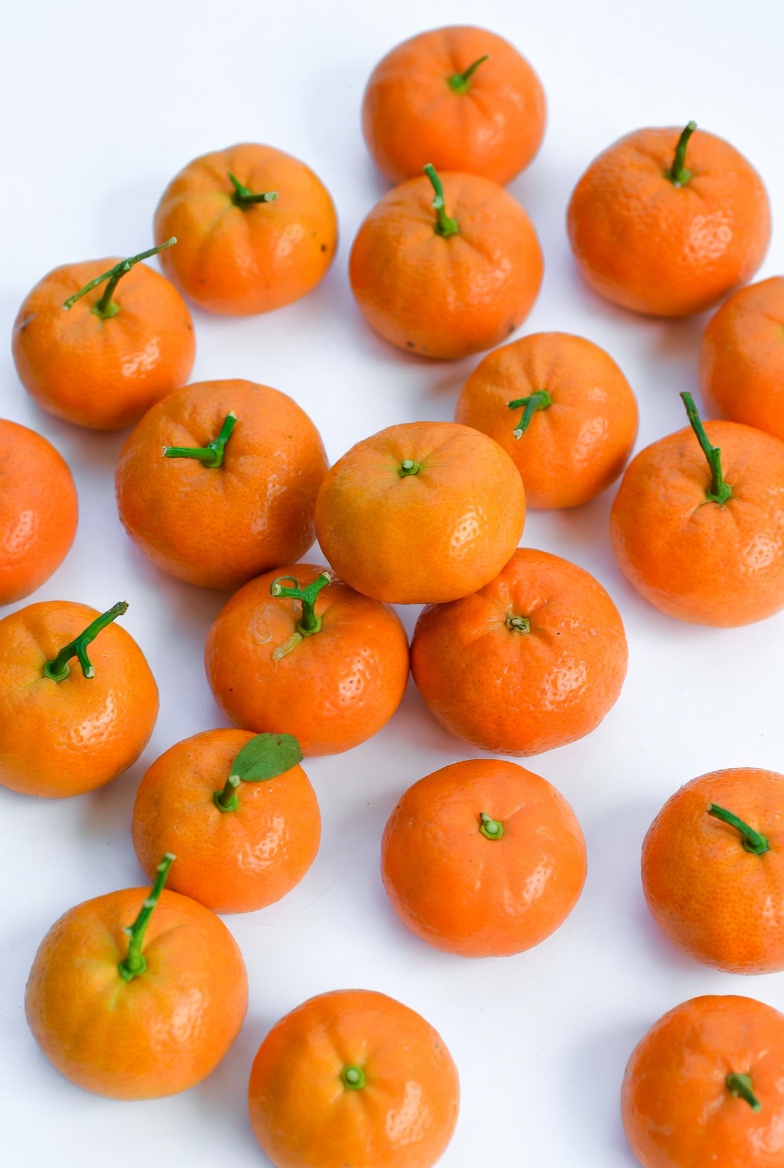 citrus fruit, food photography, fresh oranges, fruit pile, green leaves, healthy fruit, isolated, mandarin oranges, orange fruit, orange peel, ripe oranges, stems, tangerines, vitamin C, white background, oranges