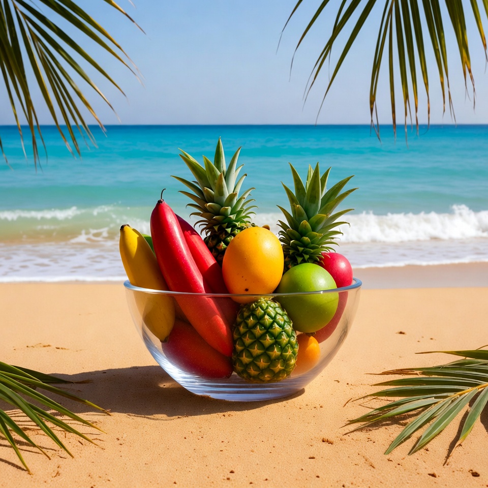 Tropical Fruit Bowl on Beach