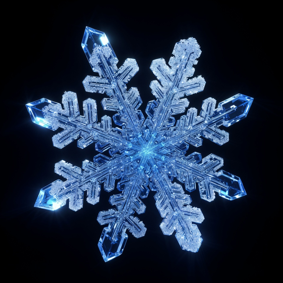 3D, black background, blue snowflake, clipart, crystal, detailed, frost, glowing, ice crystal, illustration, isolated, render, shiny, snow crystal, sparkle, symmetrical, winter, snowflake