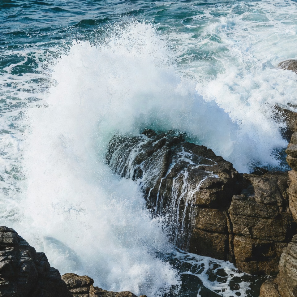 blue water, coast, coastal rocks, crashing surf, crashing wave, foam, nature, ocean, ocean spray, powerful waves, rocks, rocky shore, rugged rocks, sea, sea rocks, seascape, splash, surf, turquoise water, wave splash, waves, white foam, ocean wave