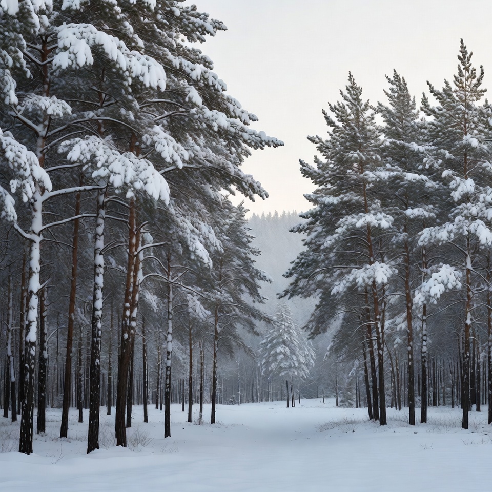 Snowy Pine Forest Path