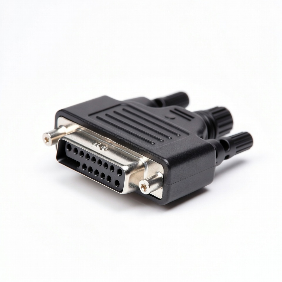 DB9 connector, DB9 female, DB9 male, RS232 adapter, black adapter, black plastic, cable adapter, computer cable, electronics accessory, female DB9, hardware connector, isolated background, male DB9, port splitter, serial adapter, serial cable, serial port, splitter cable, thumbscrews, DB9 splitter