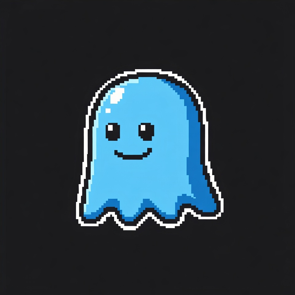 8-bit, Halloween, black background, blue ghost, cartoon ghost, clipart, cute ghost, digital art, fun, ghost, illustration, isolated background, retro, shiny, smiling ghost, spooky, pixel art