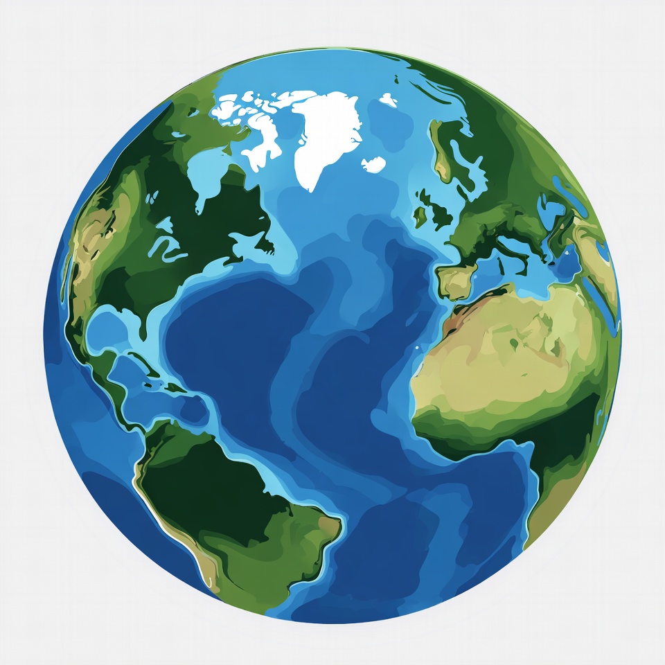 Africa, Asia, Atlantic Ocean, Earth illustration, Europe, North America, Pacific Ocean, South America, blue oceans, clipart, continents, globe, green land, illustration, isolated background, oceans, planet, polar ice, vector, world, Earth