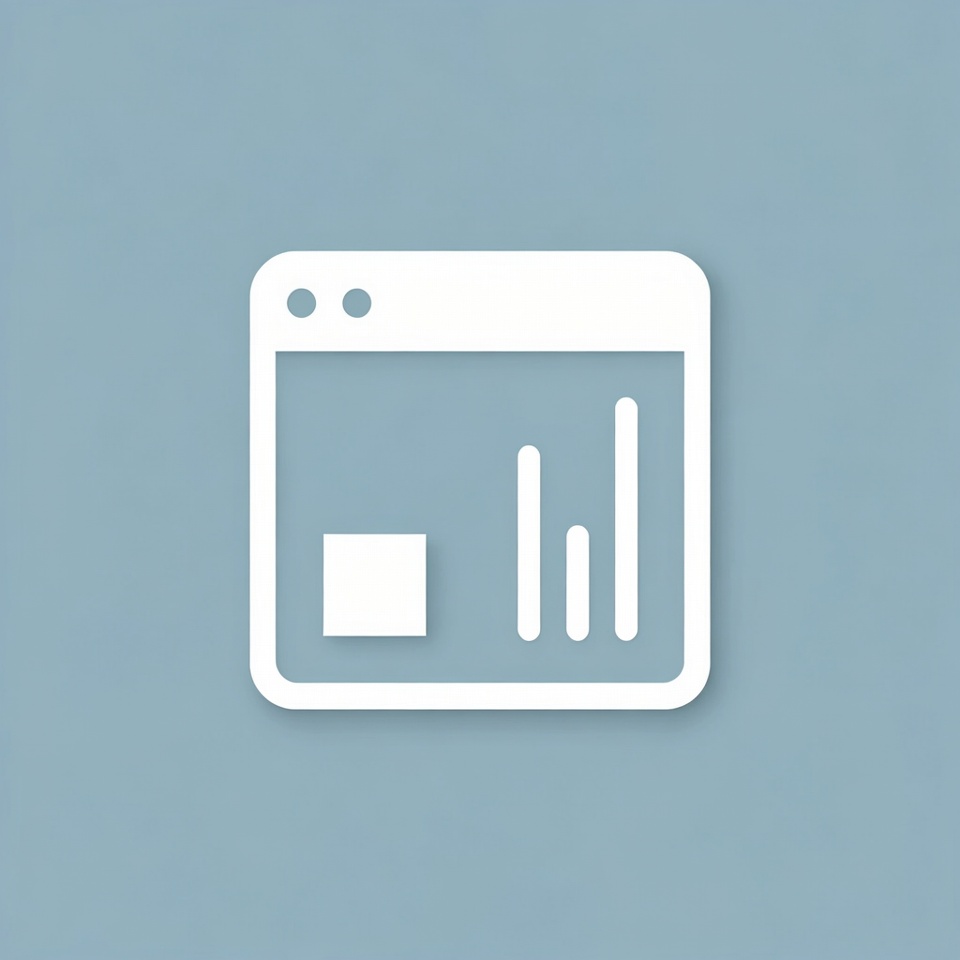 UI icon, analytics, bar chart, chart icon, dashboard, data visualization, flat design, graph, illustration, infographic, light blue background, line art, simple graphic, software icon, statistics, vector icon, web browser, white outline, window, browser icon