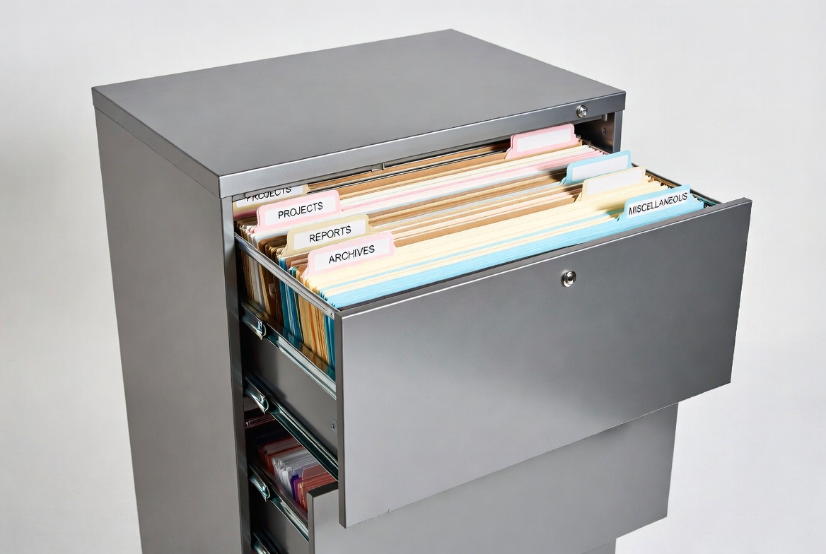 documents, file cabinet, file folders, gray cabinet, isolated background, metal cabinet, office furniture, office storage, open drawers, organization, projects folder, reports folder, vertical cabinet, filing cabinet