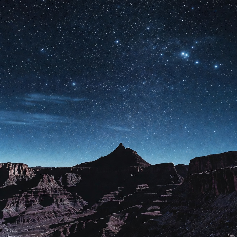 astronomy, canyon, clouds, cosmic, dark sky, desert landscape, galaxy, mountain peak, night sky, outdoors, red rock, rock formations, silhouette, stargazing, starry sky, stars, Milky Way