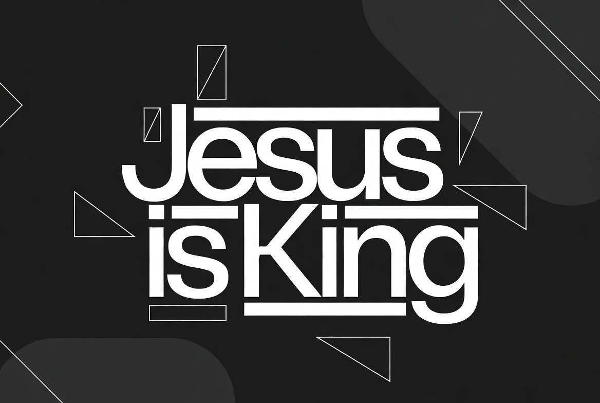 Christian, Jesus is King, King, black background, bold letters, faith message, geometric shapes, graphic, modern design, religious slogan, text, typography, white text, worship, Jesus