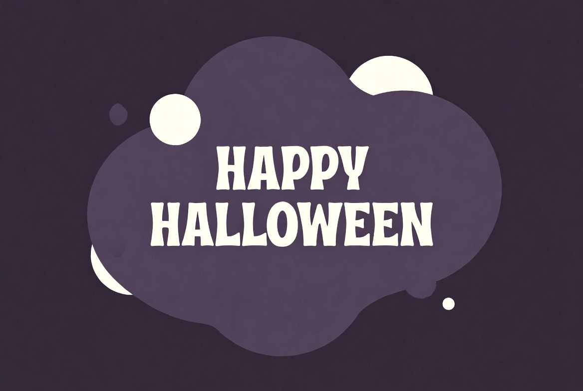 Halloween, Halloween card, Halloween text, bold letters, clipart, digital art, festive design, fun Halloween, holiday greeting, illustration, party invite, purple background, purple bubble, seasonal graphic, speech bubble, spooky holiday, vector graphic, white bubbles, white text, Happy Halloween