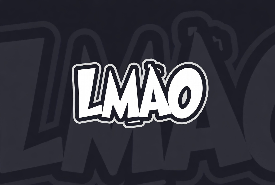 acronym, black background, bold letters, comic style, digital art, fun text, graffiti font, illustration, isolated background, laughing, meme text, slang, text, white text, LMAO