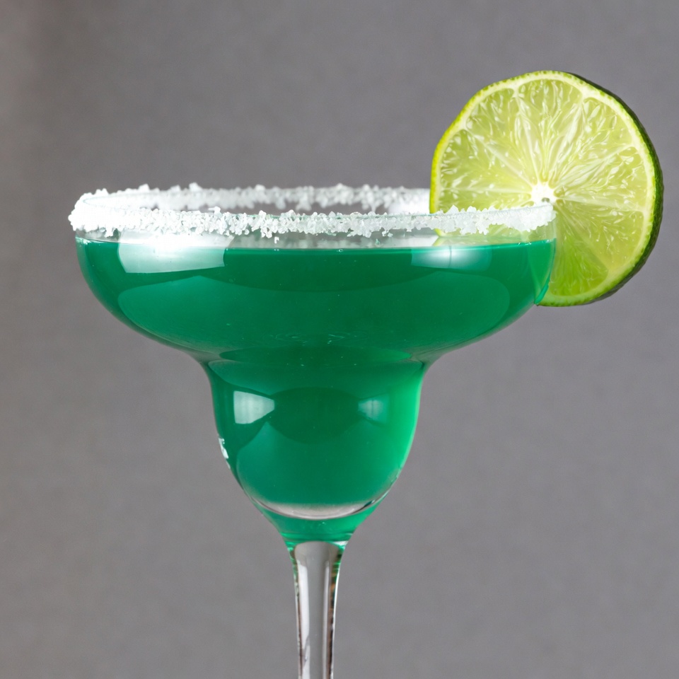 alcoholic beverage, bar drink, beverages, cocktail glass, drinks, fresh lime, green cocktail, green drink, isolated background, lime garnish, lime slice, lime wedge, margarita glass, party drink, salt rim, tropical drink, margarita