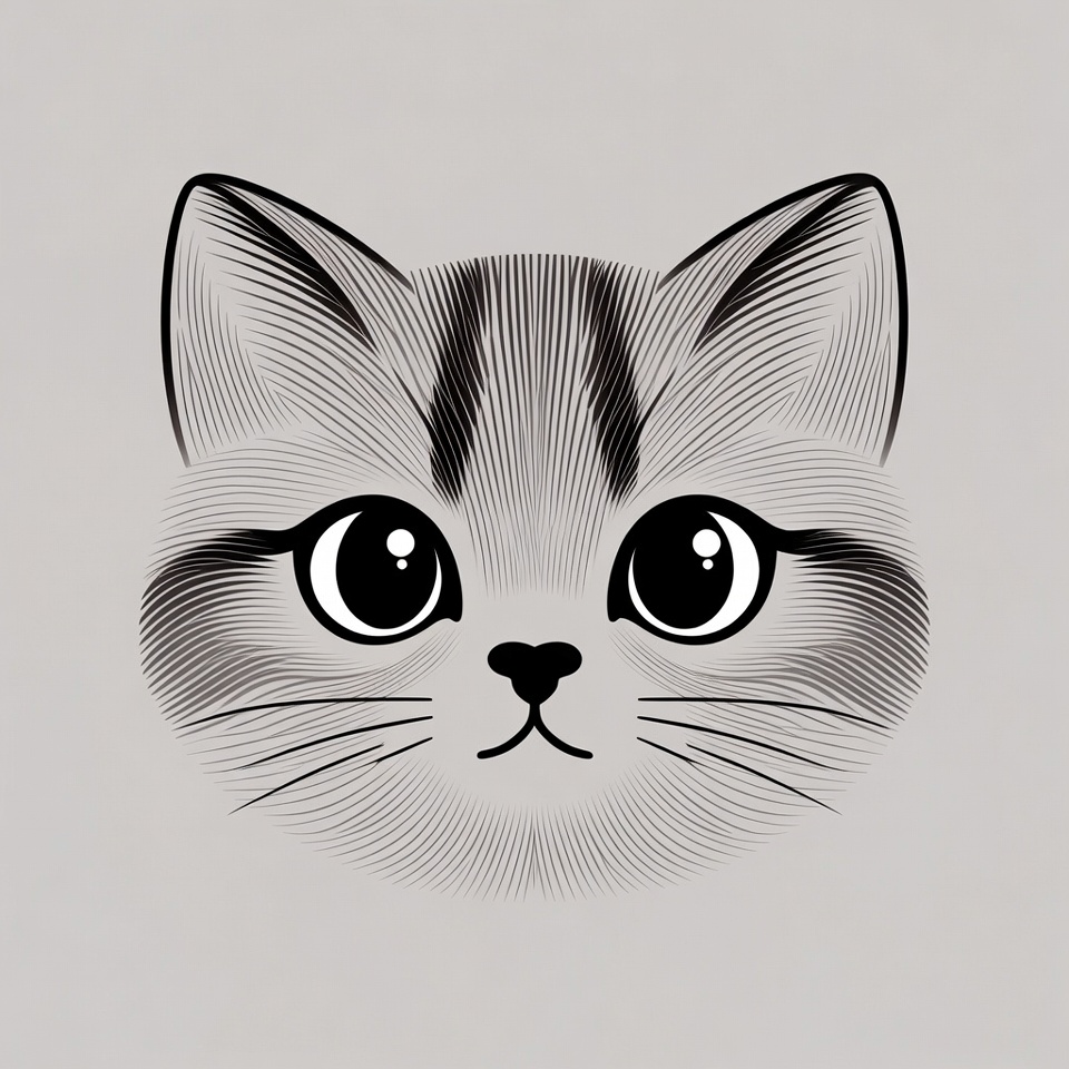 adorable cat, animal, big eyes, cat face, clipart, cute kitten, drawing, ears, feline, illustration, isolated background, line art, nose, pet illustration, striped fur, vector art, whiskers, kitten