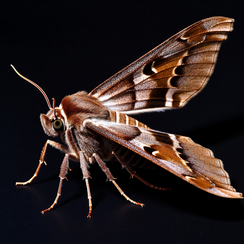 Brown moth with striped wings