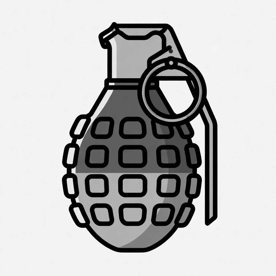 clipart, explosive, flat design, gray grenade, hand grenade, icon, illustration, isolated background, military, pin ring, segmented body, vector, weapon, grenade