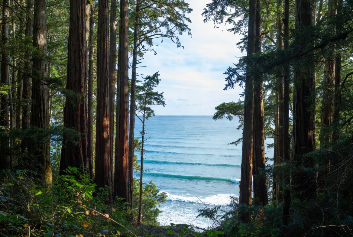 Redwoods Framing Ocean Waves