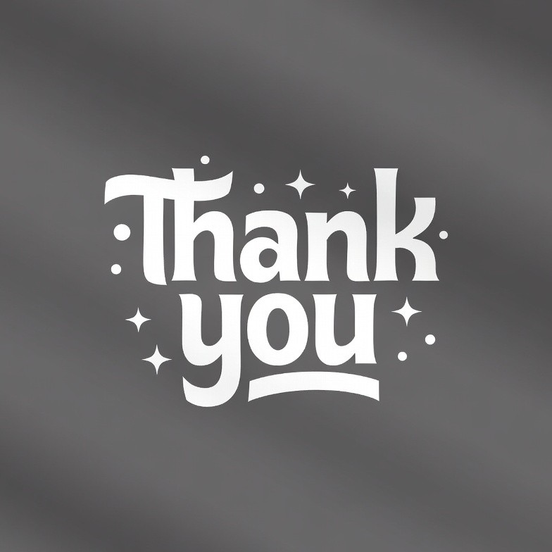 appreciation, bold font, clipart, gradient, graphic, gray background, greeting, illustration, isolated background, message, sparkles, stars, stylized letters, thank you text, white text, thank you